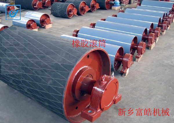 滾筒可以分為兩類(lèi):驅(qū)動(dòng)滾筒(頭滾筒)和改向滾筒(尾輪),驅(qū)動(dòng)輪傳遞動(dòng)力的主要部分。有兩種滾筒:表面光滑的和表面包橡膠的,橡膠表面可分為表面光滑的橡膠,橡膠人字表面和;菱形橡膠表面來(lái)滿(mǎn)足不同的技術(shù)要求。改向滾筒可分為光滑的橡膠表面和光滑表面。所有的滾筒采用兩種:鑄鐵和鑄鋼件,軸是由45 #鋼,外殼采用焊接組件。